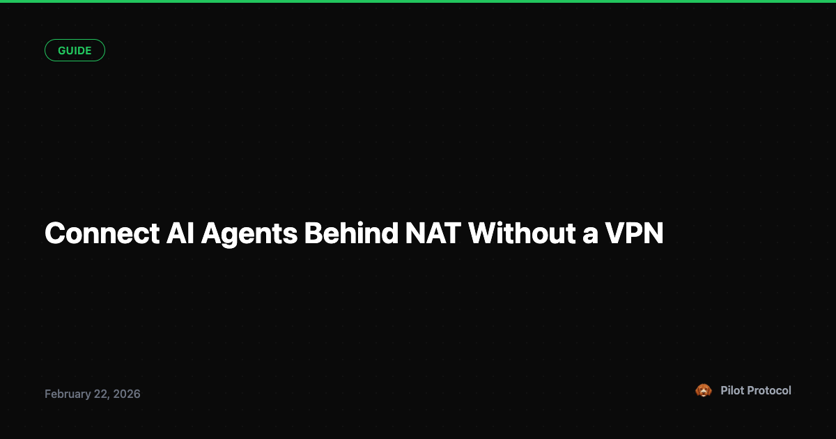 88% of networks involve NAT. Pilot's three-tier traversal -- STUN, hole-punching, relay -- connects agents behind any firewall automatically. No VPN, no port forwarding, no ngrok.